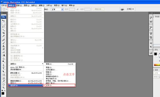 9、在打開的界面上方點(diǎn)擊“編輯”,然后最下面“首選項”,點(diǎn)擊右側(cè)的“文字”,