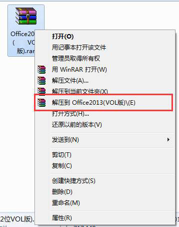 2、在安裝包上右擊鼠標,選擇“解壓到office2013(VOL版)”