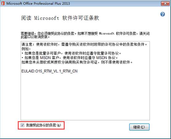 6、勾選“我接受此協(xié)議的條款”,然后點擊繼續(xù)。
