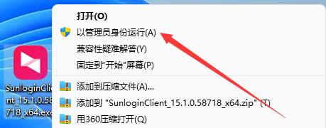 2、在向日葵遠(yuǎn)程安裝包上右擊鼠標(biāo),選擇以管理員身份運(yùn)行打開程序。