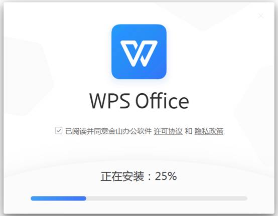 3、勾選已閱讀并同意金山辦公軟件許可協(xié)議和隱私策略。
